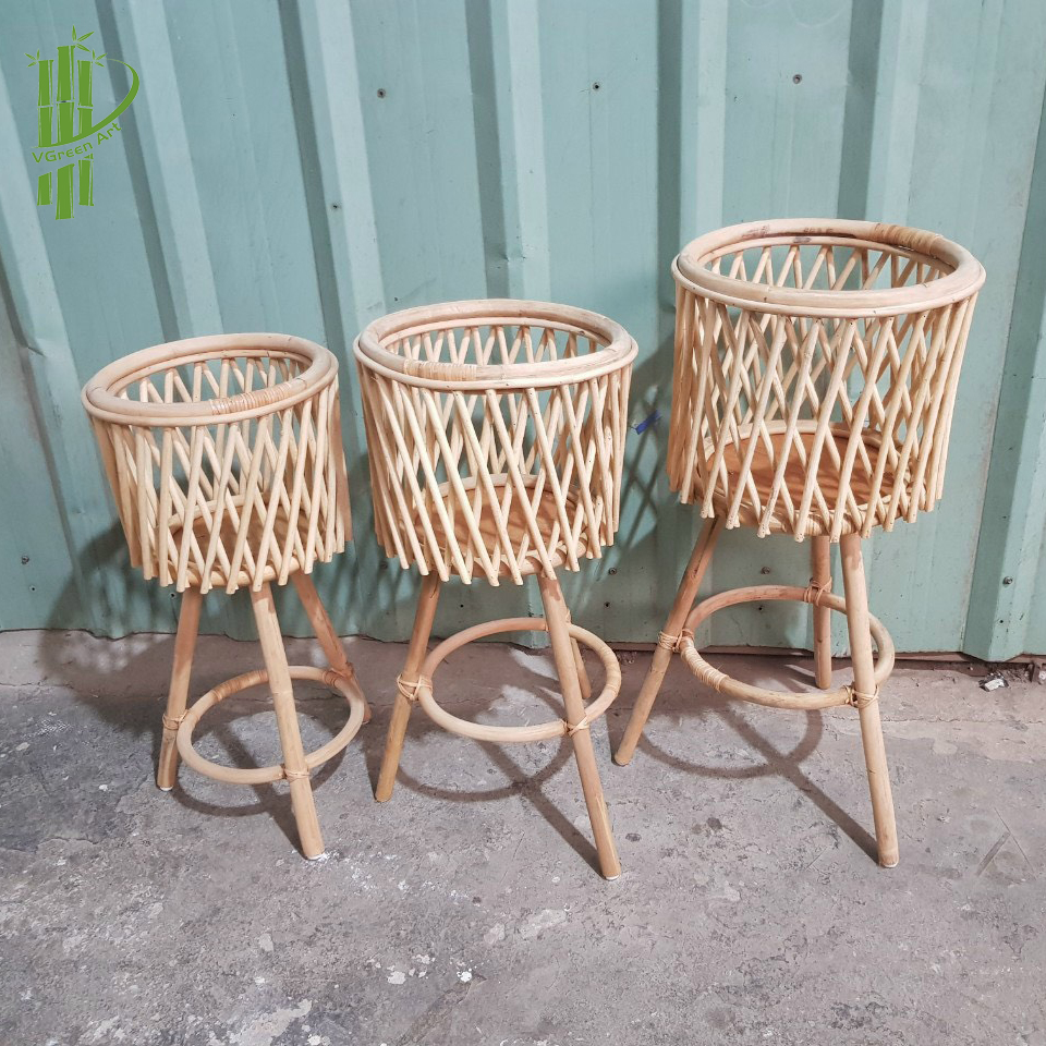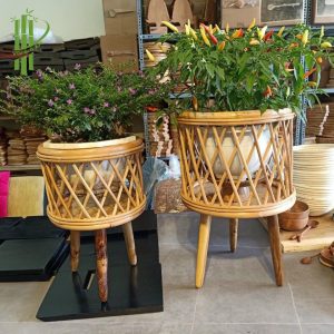 This rattan plant stand holder consists of: Bamboo basket, Bamboo legs.