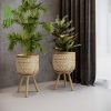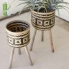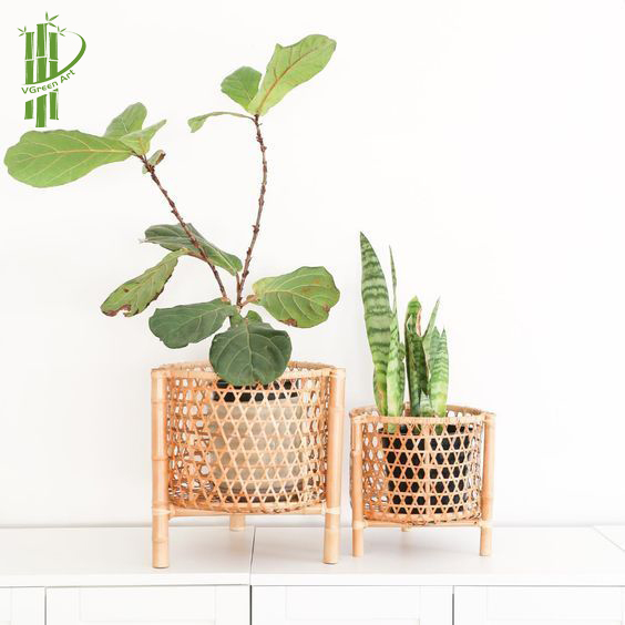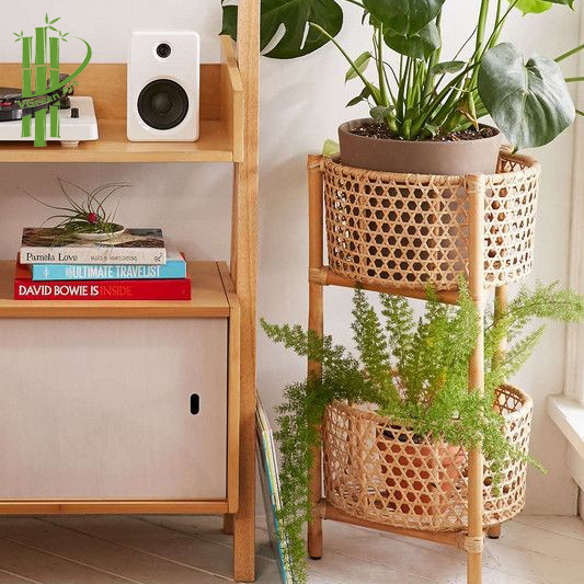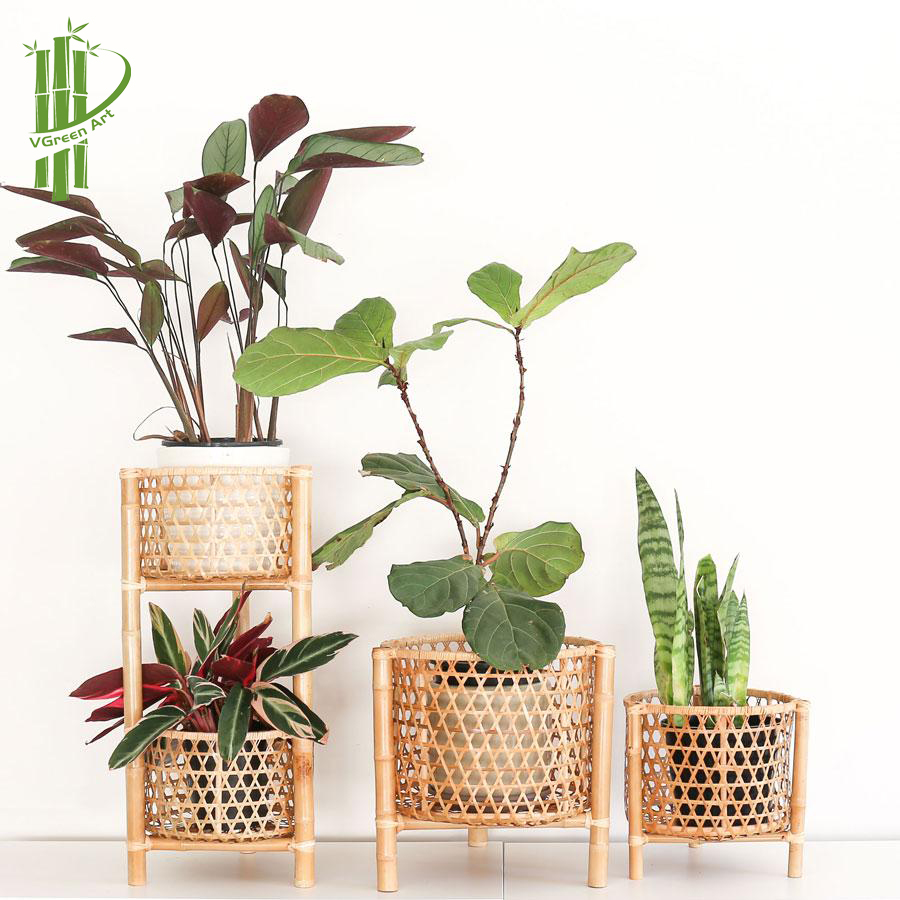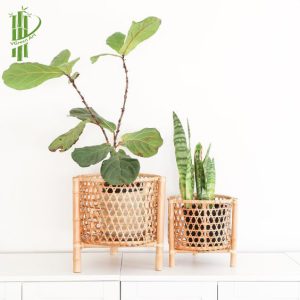 This plant stand holder consists of: Bamboo basket, Bamboo legs.