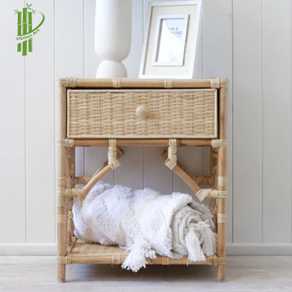 The Rattan Bedside Table is solid and unique in its structure and design.