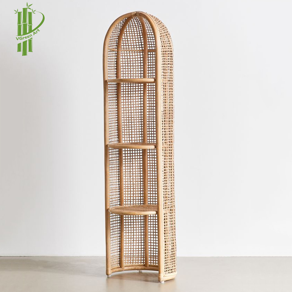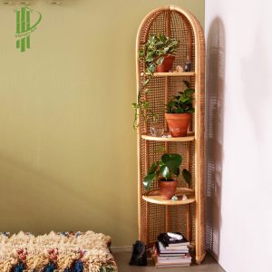 Give your plants, books and little treasures a cozy corner to sit with this cocooned rattan shelf.