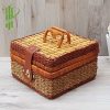 This product is woven from rattan and is handmade. It is non-toxic, harmless, environmentally friendly, and pollution-free. The fabric lining is removable and washable. In addition, it is treated with environmentally friendly water-based coatings, which are moisture and mold resistant and do not cause harm to the environment and the human body.