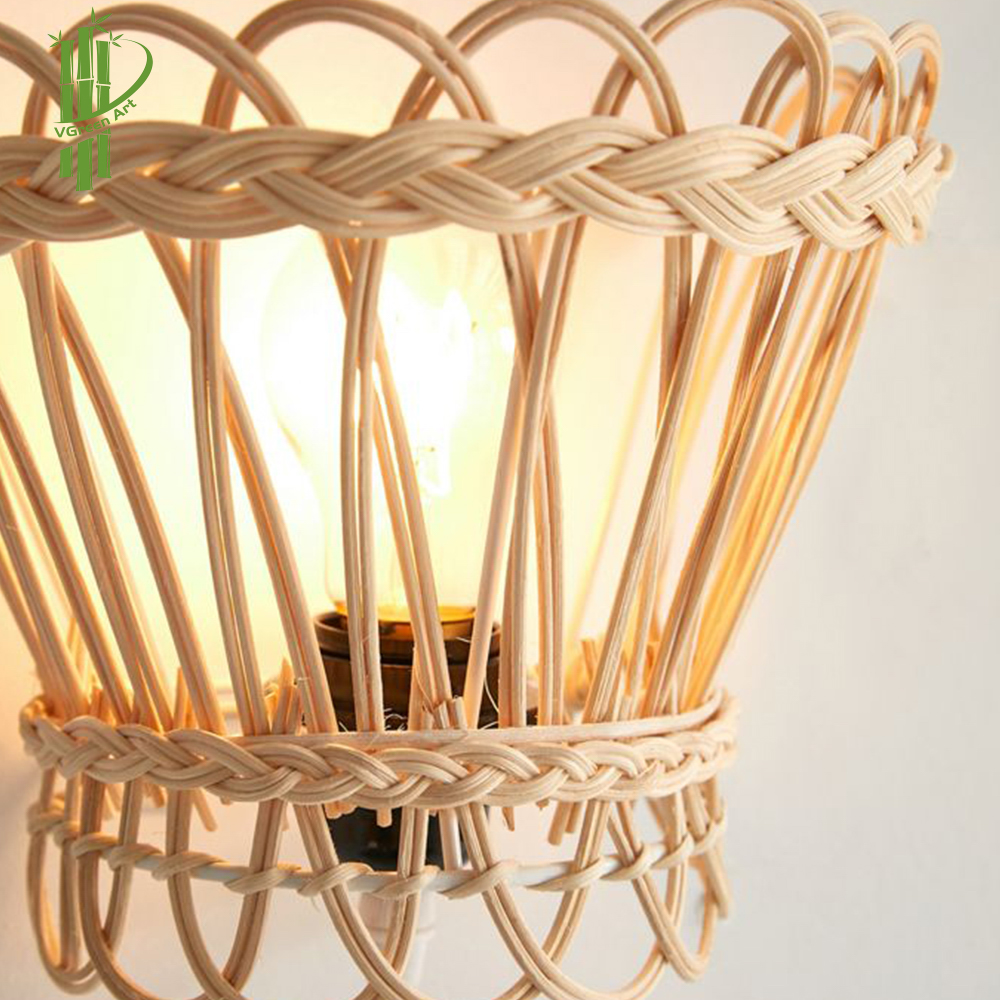 Rattan Sconce is wall lamp and natural wicker lampshade is made by skilled craftsman from Vietnam. There is a kind of symmetrical beauty. Can make the light more revealing.very suitable for Indoor&Outdoor decoration such as restaurant/Cafe/patio/house and so on.The design is open weave vertically. Special Clear lines design.