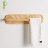 Display towel and more on this arching wall shelf, constructed from rattan. Mounts to wall.