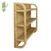 Display towel and more on this arching wall shelf, constructed from rattan. Mounts to wall.