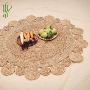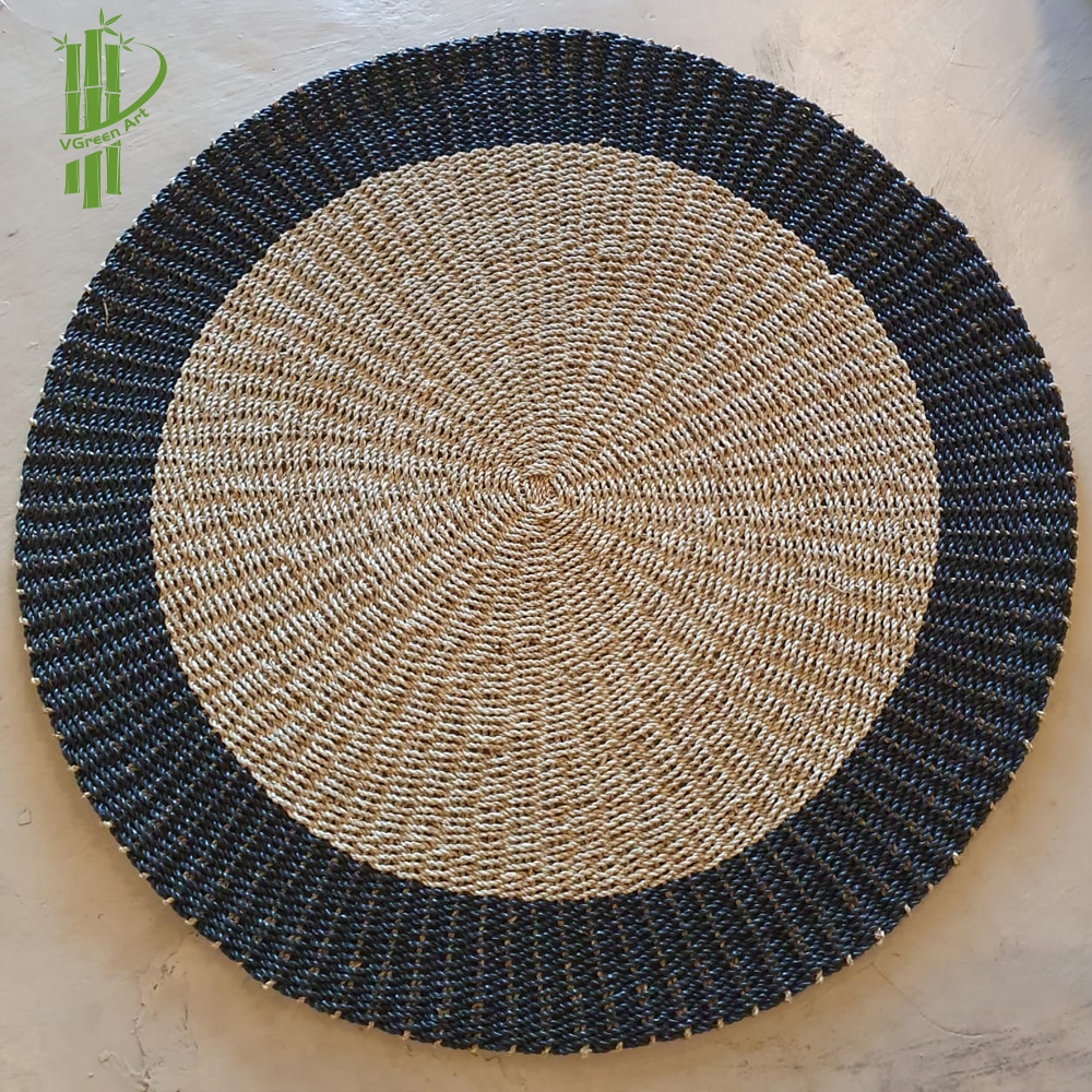 Seagrass rug sku 04 with round shaped. A fully hand-crafted rug in a handcrafted way at Viettime Craft. Decor unique and natural, this rug will give authenticity, as well as a boho and chic side to your interiors.