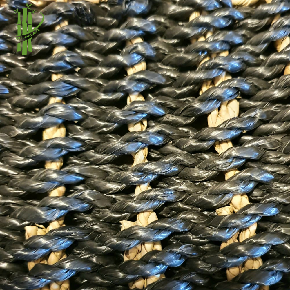 These stylish handmade natural straw grass and black seagrass floor mats come in a round shape, and are available in 120cm or 200cm diameter.