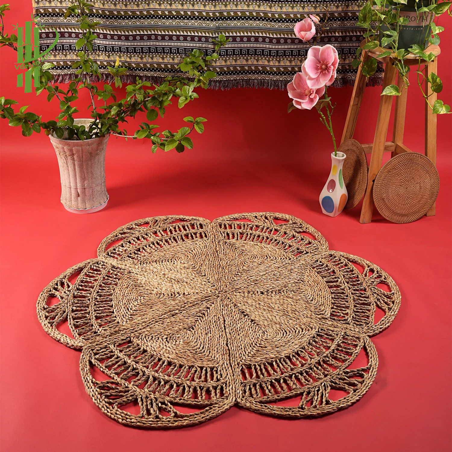 Seagrass rug sku 01 with round shaped. A fully hand-crafted rug in a handcrafted way at Viettime Craft. Decor unique and natural, this rug will give authenticity, as well as a boho and chic side to your interiors.
