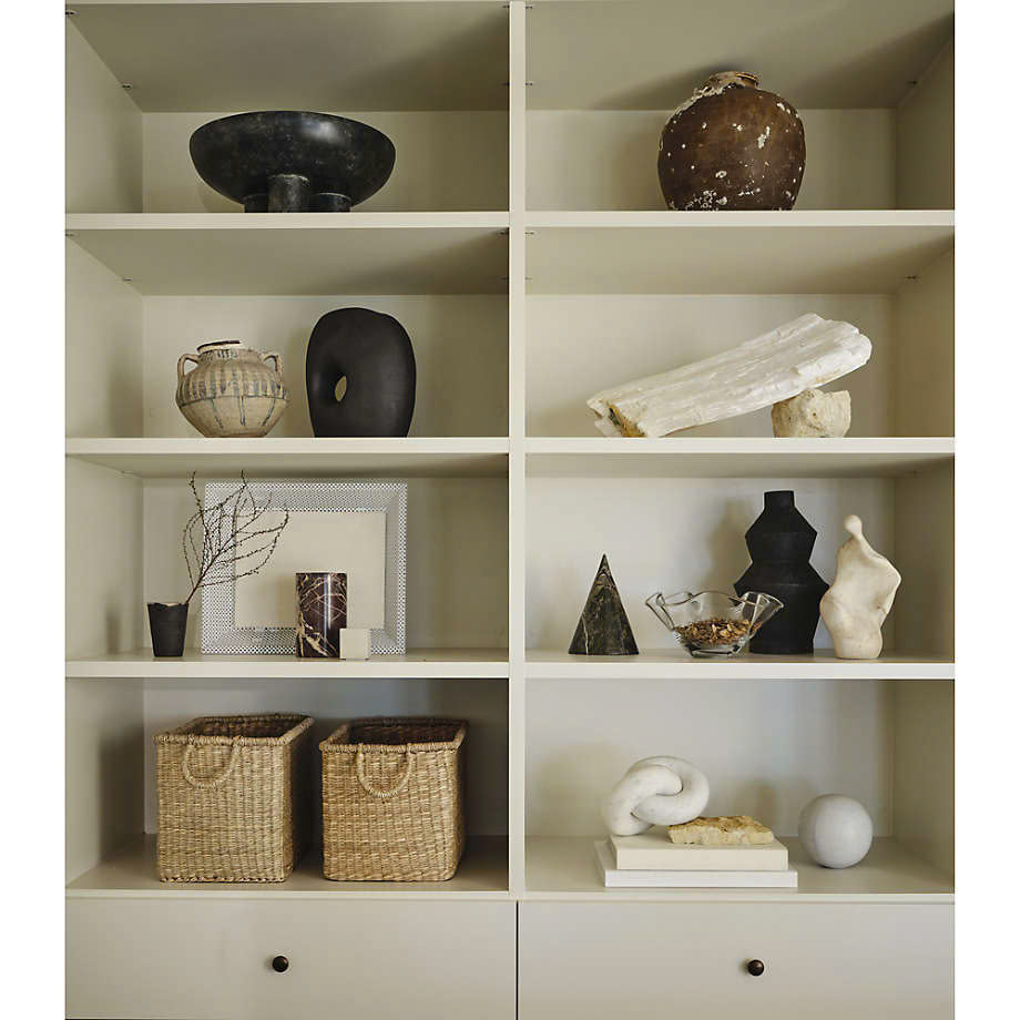 Natural material baskets, especially the water hyacinth one, are not only sustainable but also very stylish. They can serve as both a storage space and a decorative feature.