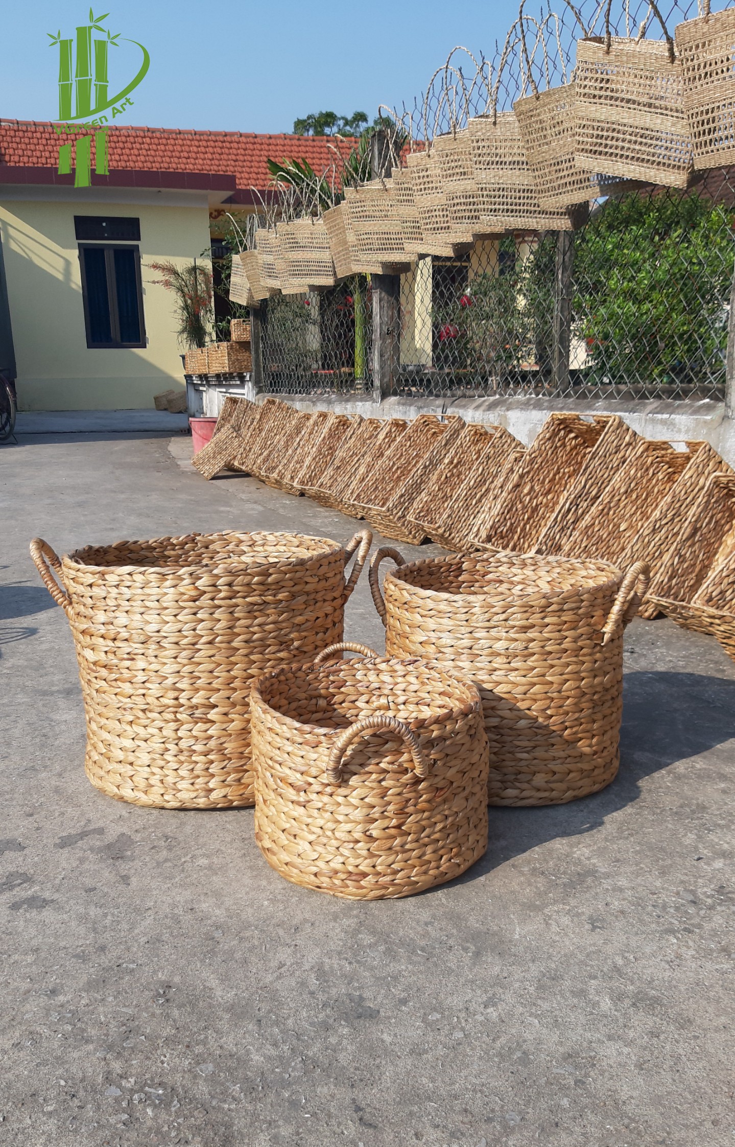 You can use them to store tablecloths, towels or soft clothing. Or simply, you can use them as garbage containers, note that You should use it with dry garbage. We would like to offer woven basket made from water hyacinth .