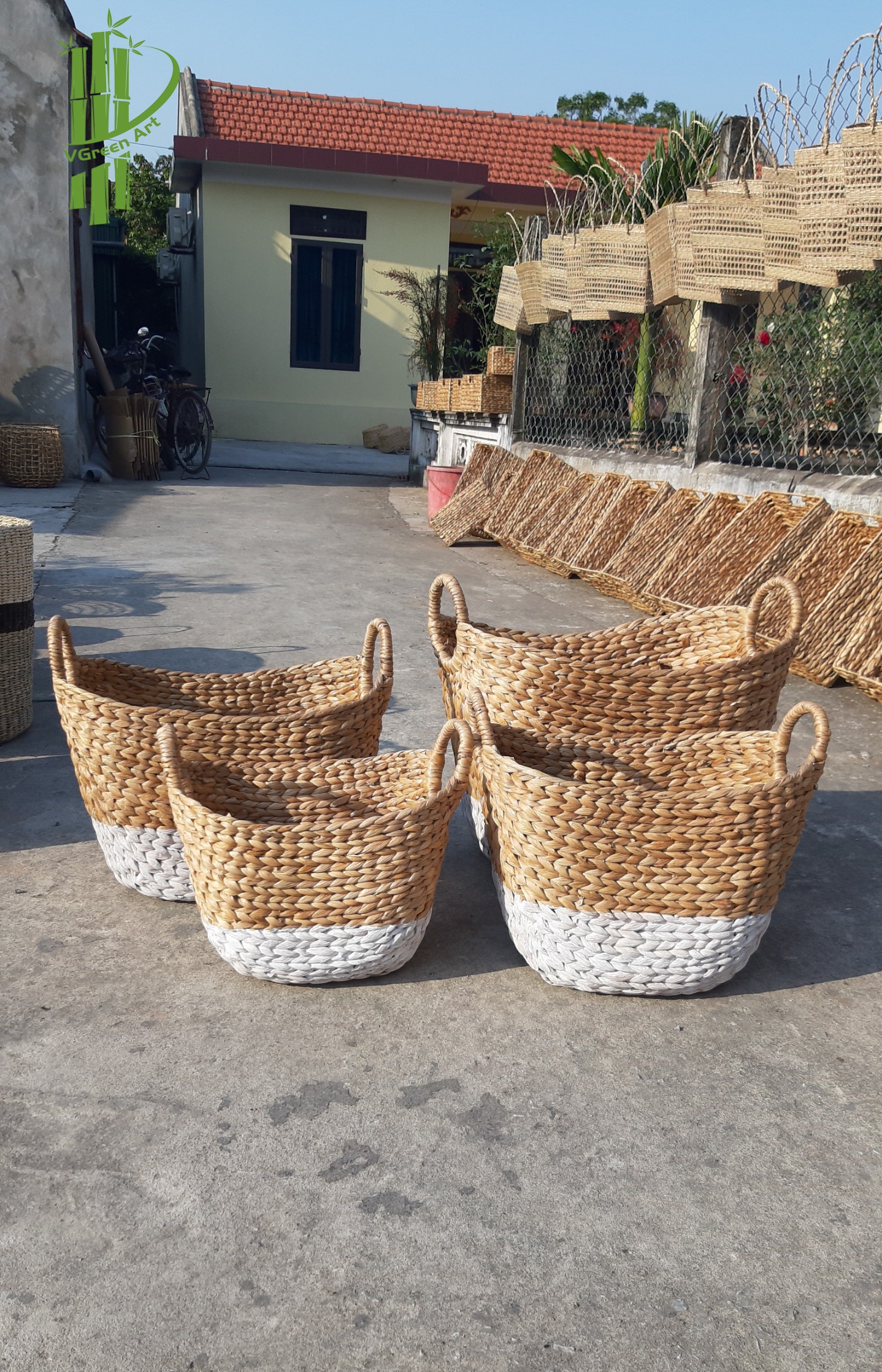 You can use them to store tablecloths, towels or soft clothing. Or simply, you can use them as garbage containers, note that You should use it with dry garbage. We would like to offer woven basket made from water hyacinth .
