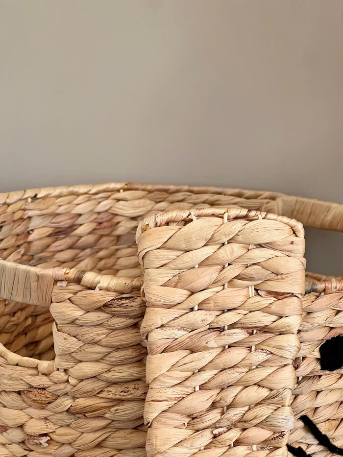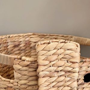 You can use them to store tablecloths, towels or soft clothing. Or simply, you can use them as garbage containers, note that You should use it with dry garbage. We would like to offer woven basket made from water hyacinth .