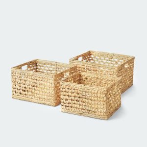 You can use them to store tablecloths, towels or soft clothing. Or simply, you can use them as garbage containers, note that You should use it with dry garbage. We would like to offer woven basket made from water hyacinth .
