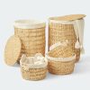 Water Hyacinth Laundry Basket sku 31 with metal frame, Natural Water Hyacinth Handcrafted from natural water hyacinth, clean renewable resources. Versatile woven basket for storing hand towels, toiletries in bath, or magazines, games, pet toys, media, household items.