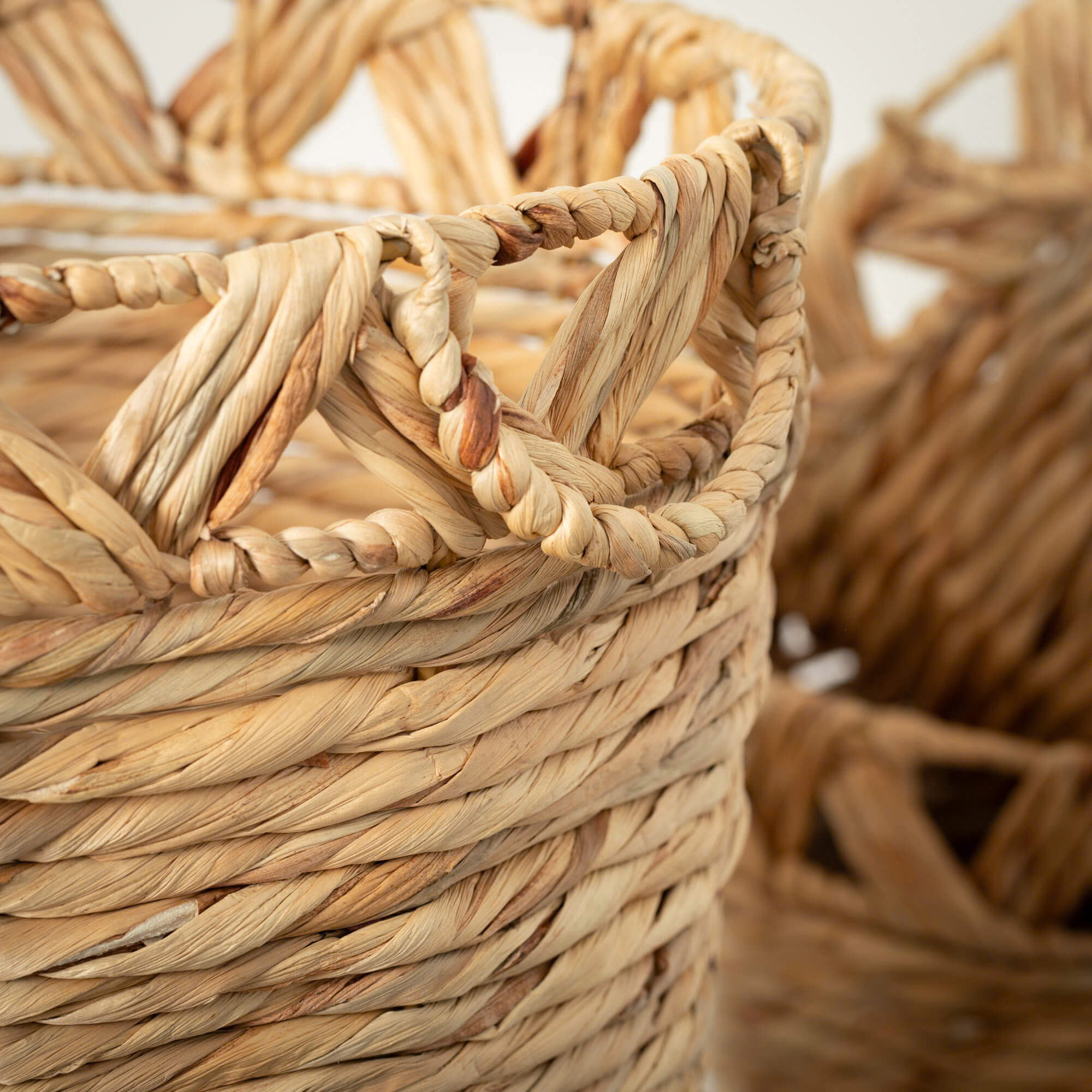 You can use them to store tablecloths, towels or soft clothing. Or simply, you can use them as garbage containers, note that You should use it with dry garbage. We would like to offer woven basket made from water hyacinth .